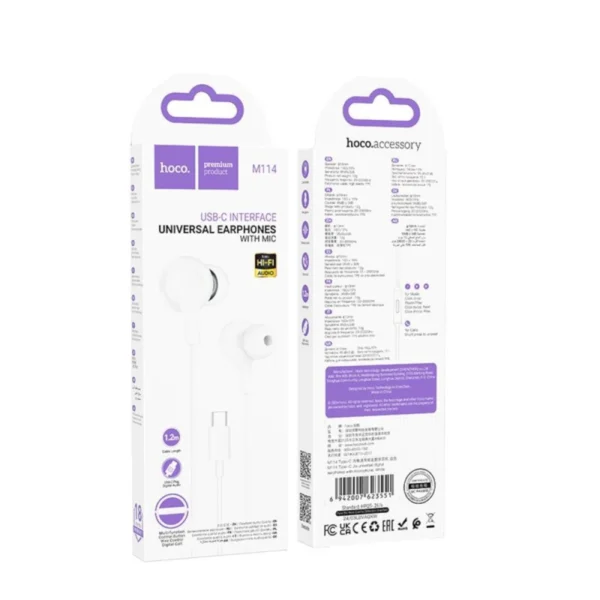 Τα ακουστικά Hoco M114 προσφέρουν άνετη εφαρμογή και καθαρό ήχο. Με σύνδεση USB-C, είναι συμβατά με πολλές συσκευές. Διαθέτουν ενσωματωμένο μικρόφωνο για κλήσεις handsfree και χειριστήρια στο καλώδιο για εύκολο έλεγχο. Ιδανικά για καθημερινή χρήση στη δουλειά ή στις μετακινήσεις σου.