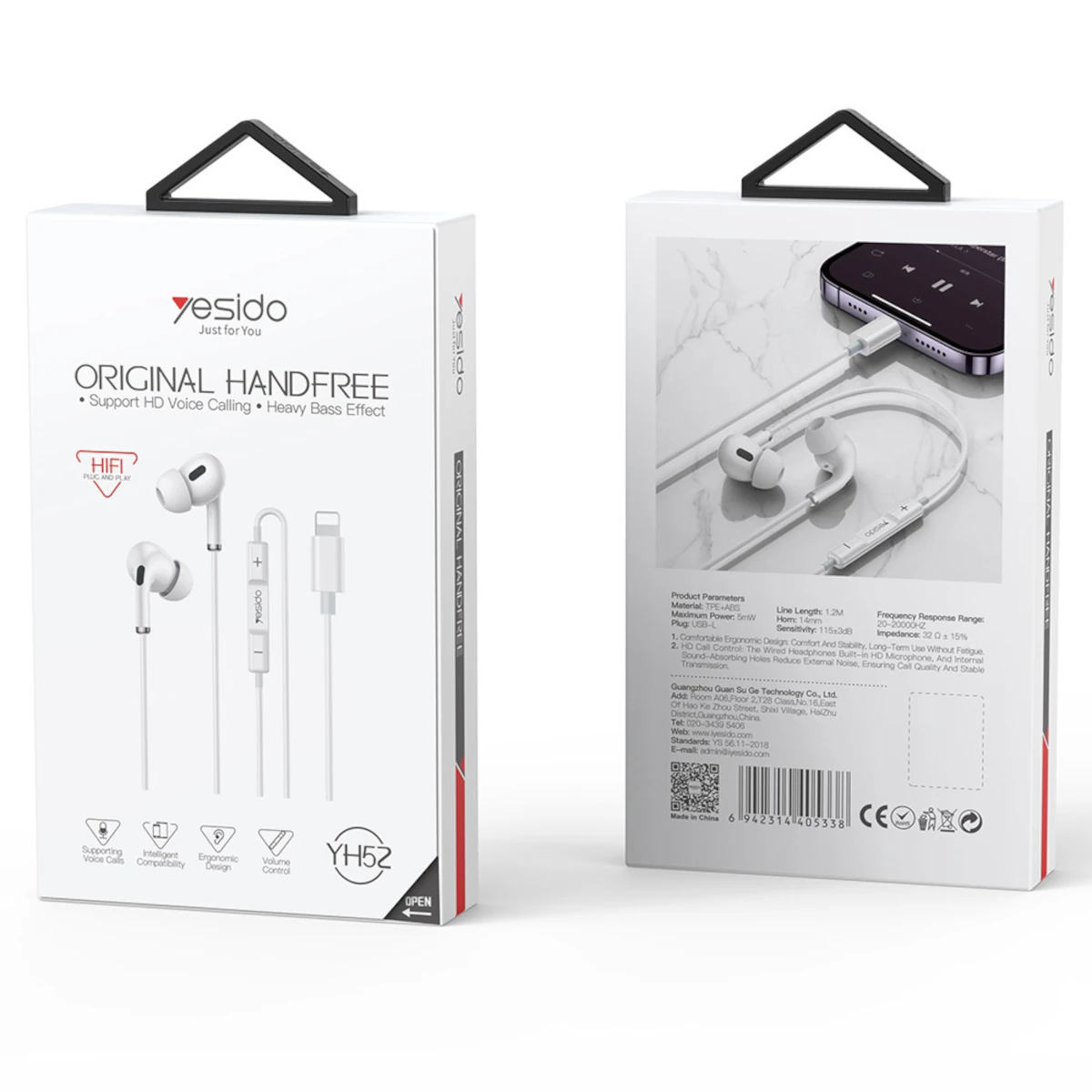 Απολαύστε απαράμιλλη ποιότητα ήχου με τα ενσύρματα ακουστικά Yesido YH52, σχεδιασμένα με υποδοχή Lightning για απρόσκοπτη συμβατότητα με συσκευές Apple.